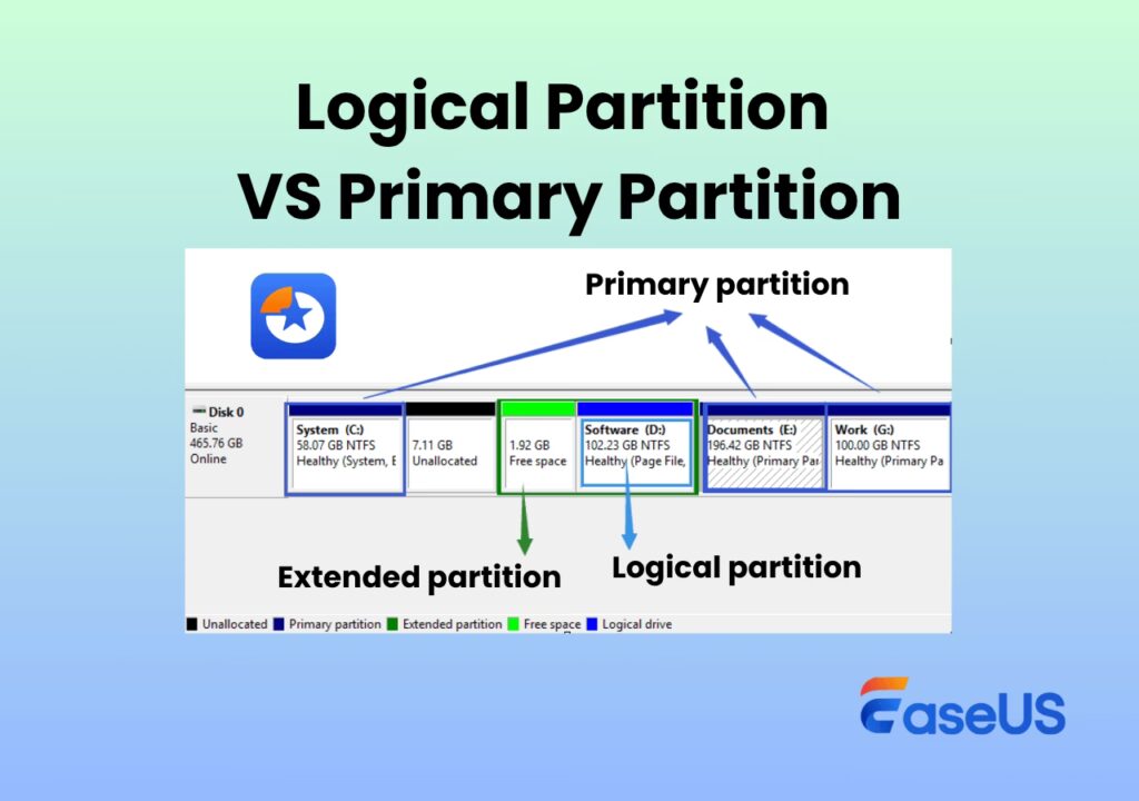 - Datastorage: Ligesom en primær partition kan en logisk partition formateres med et filsystem og bruges til at gemme alle typer data.