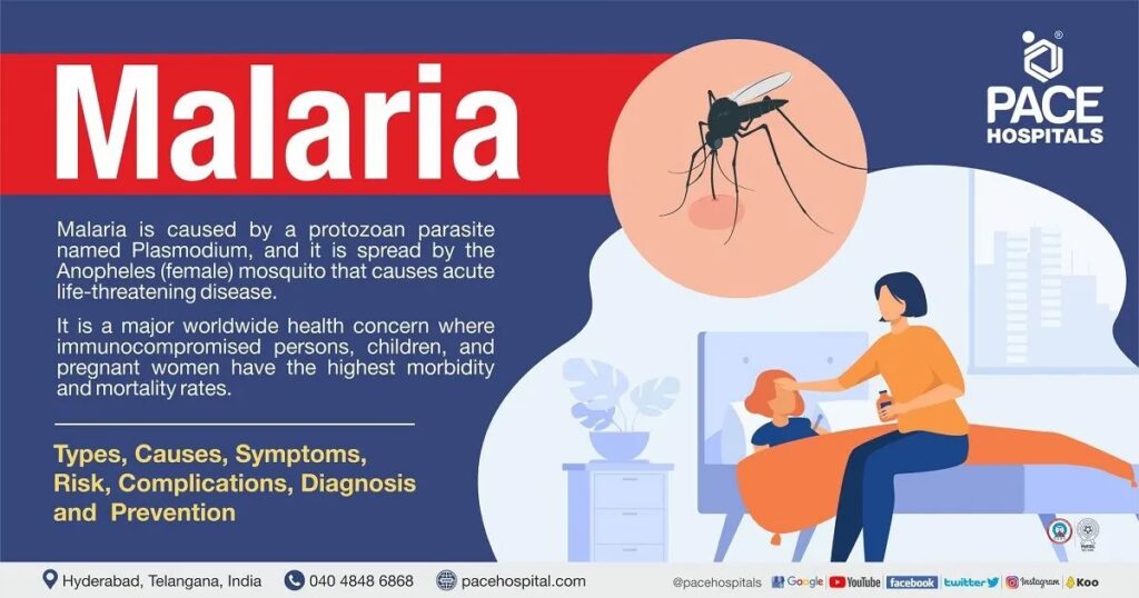 Malaria er en infektionssygdom forårsaget af parasitter fra slægten Plasmodium. Mennesker bliver smittet gennem stik fra inficerede hunmyg af Anopheles-slægten. Der findes seks arter af Plasmodium-parasitten, der vides at inficere mennesker: P. falciparum, P. vivax, P. ovale wallikeri, P. ovale curtisi, P. malariae og P. knowlesi. Af disse er P. falciparum den mest almindelige og farligste, da den kan føre til alvorlige komplikationer og død, hvis den ikke behandles hurtigt og korrekt. I Den Europæiske Union (EU) er malaria en anmeldepligtig sygdom for at overvåge importerede tilfælde og forhindre lokal smittespredning.