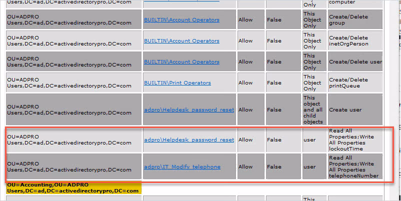 Active Directory kommer med flere indbyggede grupper som "Account Operators" og "Backup Operators". Selvom deres navne kan virke passende til visse delegeringsopgaver, har disse grupper ofte vidtrækkende og nogle gange uventede rettigheder, der kan give brugerne langt mere adgang end nødvendigt. Det er en langt sikrere praksis at oprette dine egne, nye sikkerhedsgrupper og kun tildele præcis de rettigheder, der er nødvendige for opgaven.