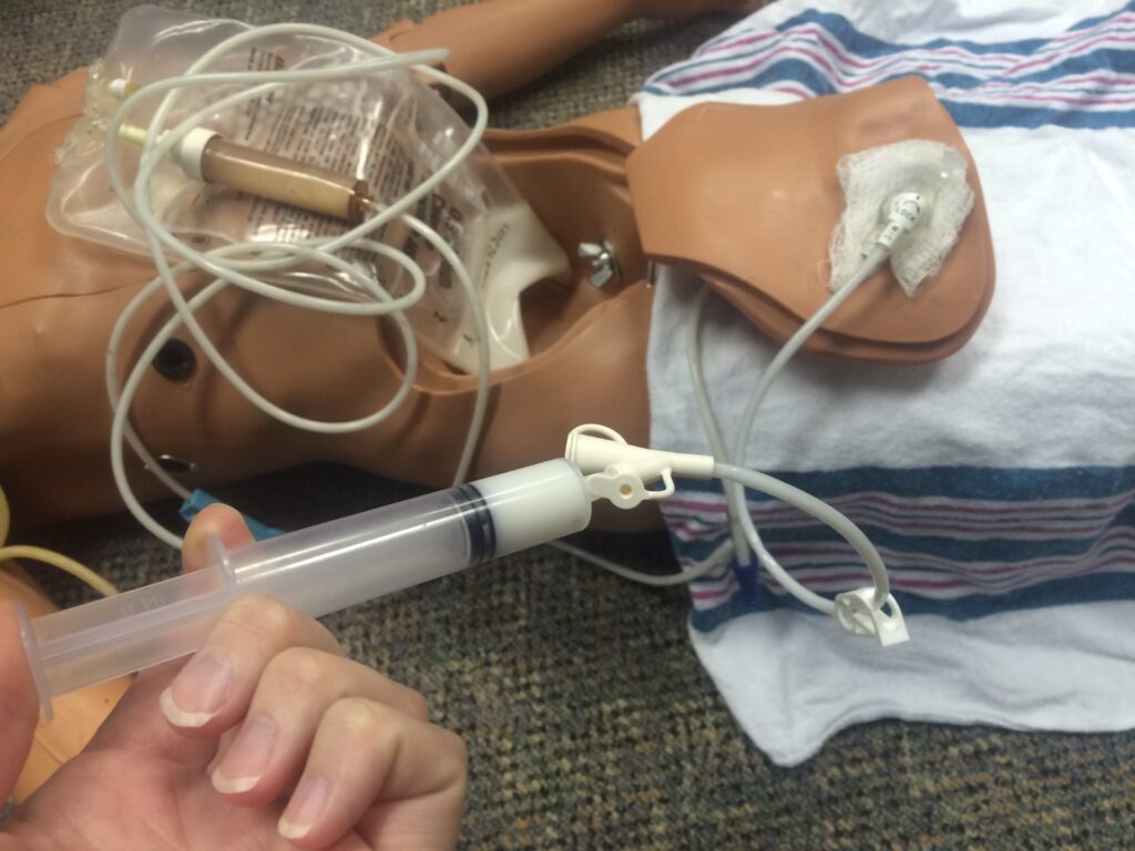 - Administration af medicin: Tilslut sprøjten med medicinopløsningen til sonden og injicer langsomt og jævnt.