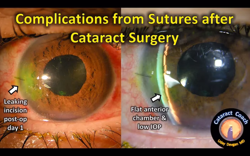 Infektion inde i øjet er en af de mest frygtede komplikationer, men den er ekstremt sjælden takket være strenge sterile procedurer (forekommer i mindre end 0,1% af tilfældene). Symptomerne udvikler sig hurtigt, normalt inden for den første uge, og omfatter betydelig smerte, tiltagende rødme, hævelse, pus i øjet og markant synsnedsættelse. Det kræver akut behandling med antibiotika.