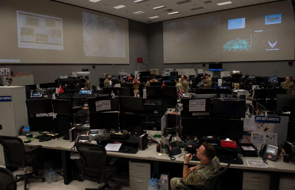 Mens et civilt AOCC fokuserer på passagerflow og effektivitet, har et militært Air Operations Center (AOC) et helt andet formål: at sikre et lands luftrum og udføre militære luftoperationer. Disse centre er hjernen bag et lands luftforsvar. Her overvåges luftrummet konstant for potentielle trusler, og det er herfra, militære fly og forsvarsystemer dirigeres.