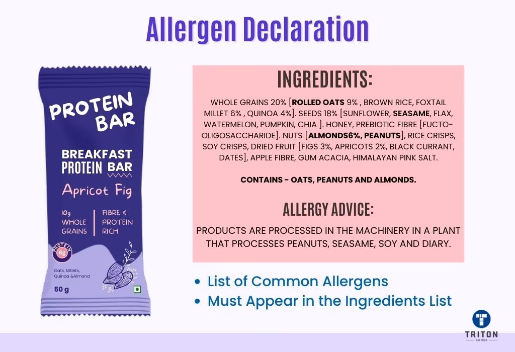 Den anden metode er at tilføje en separat og tydelig erklæring umiddelbart efter eller ved siden af ingredienslisten. Denne erklæring starter typisk med ordet "Indeholder" og lister derefter alle allergener, der findes i produktet. Dette giver et hurtigt overblik, men det er stadig en god idé at læse hele ingredienslisten for at forstå konteksten.