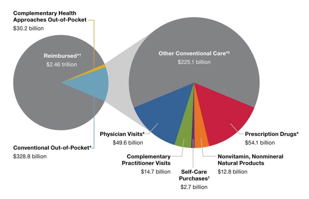 Der kan være flere årsager. Det kan skyldes underrapportering, en reel ændring hvor folk stoler mere på vestlig medicin til behandling af sygdomme, eller at CAM primært anvendes for generel velvære og ikke til at kurere specifikke lidelser.