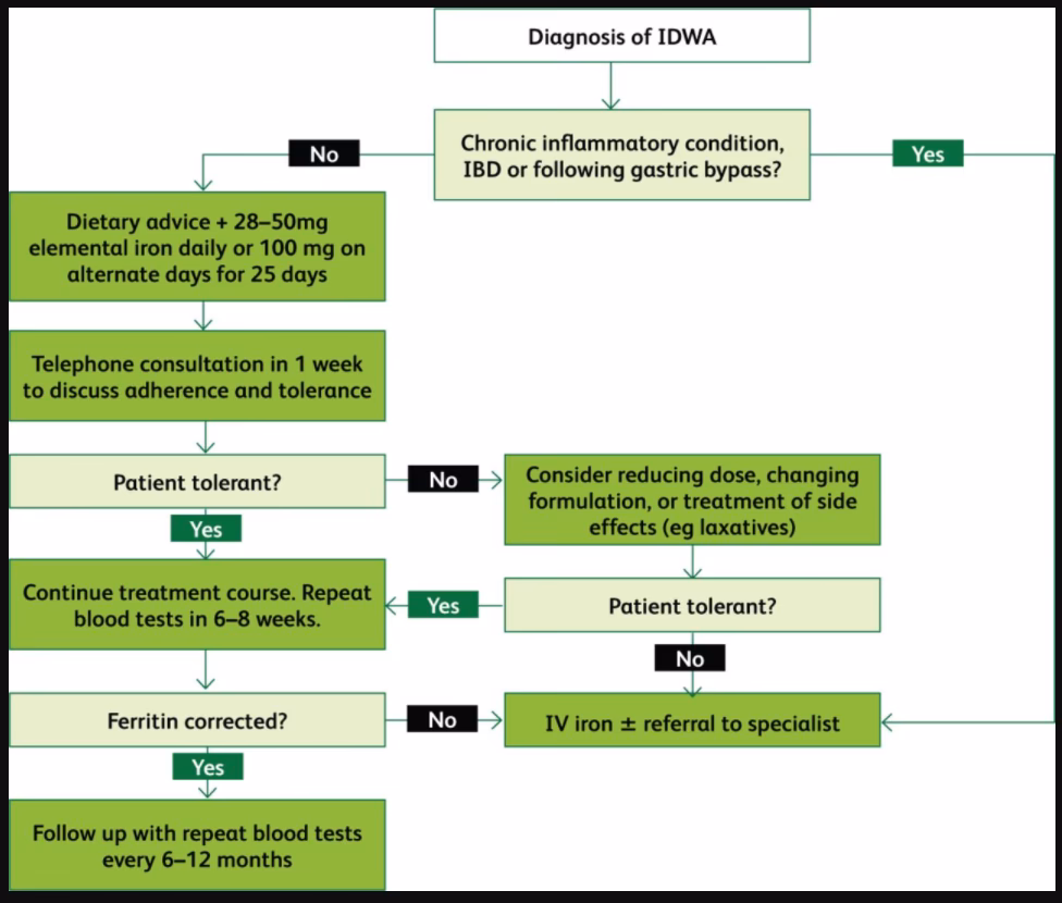 Målet med behandlingen er todelt: at genopfylde kroppens jernlagre og at identificere og håndtere den underliggende årsag til manglen. Behandlingen ligner den for jernmangelanæmi og involverer typisk en kombination af kostændringer og jerntilskud.