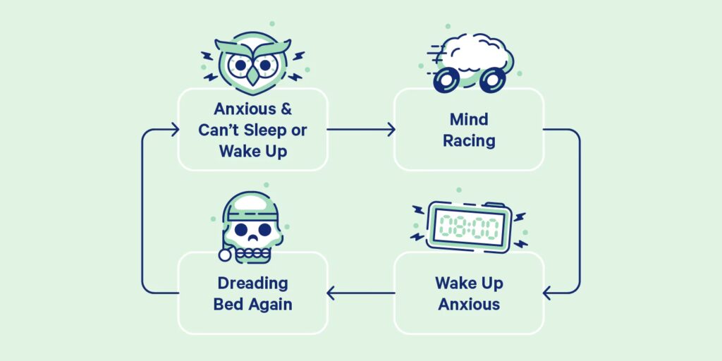 Personer, der lider af generaliseret angstlidelse (GAD), panikangst eller posttraumatisk stresslidelse (PTSD), har en markant højere risiko for at opleve søvnproblemer. For mennesker med PTSD kan frygten for mareridt eller flashbacks gøre natten til en kilde til stor angst. Ved generaliseret angst kan de daglige bekymringer, som man måske kan distrahere sig fra i løbet af dagen, pludselig virke overvældende i nattens stilhed.