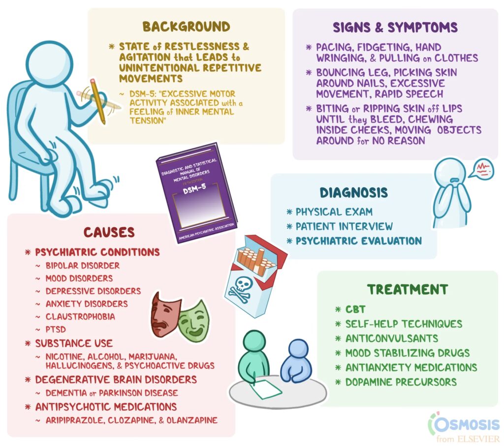 Rastløshed er mere end bare at have svært ved at sidde stille. Det er en samling af fysiske og mentale symptomer, der kan forværre din angst. Her er nogle af de mest almindelige manifestationer: