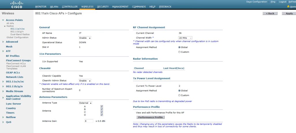 - LLDP Power: Viser den strømmængde, der er forhandlet via LLDP-protokollen. En vellykket forhandling er afgørende for, at AP'et kan fungere med fuld kapacitet.