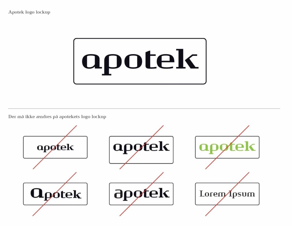 Den er ekstremt alsidig. Man kan forestille sig den på apotekets facade, på hyldeforkanter, på etiketter til receptpligtig medicin, i informationsbrochurer, på apotekets hjemmeside og i deres mobilapp. Dens rene design sikrer konsistens og læsbarhed på tværs af alle platforme.