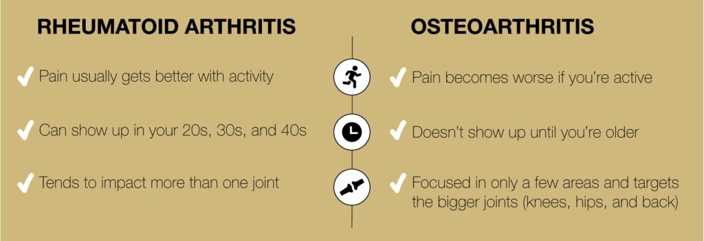Det kan være svært at skelne mellem de tidlige tegn på gigt og de almindelige smerter, som alle oplever fra tid til anden. Tabellen nedenfor kan hjælpe med at tydeliggøre forskellene: