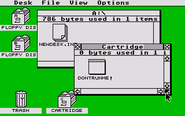 - GEM (Graphics Environment Manager): Det lag, der gjorde ST berømt. GEM bestod af to hovedkomponenter: