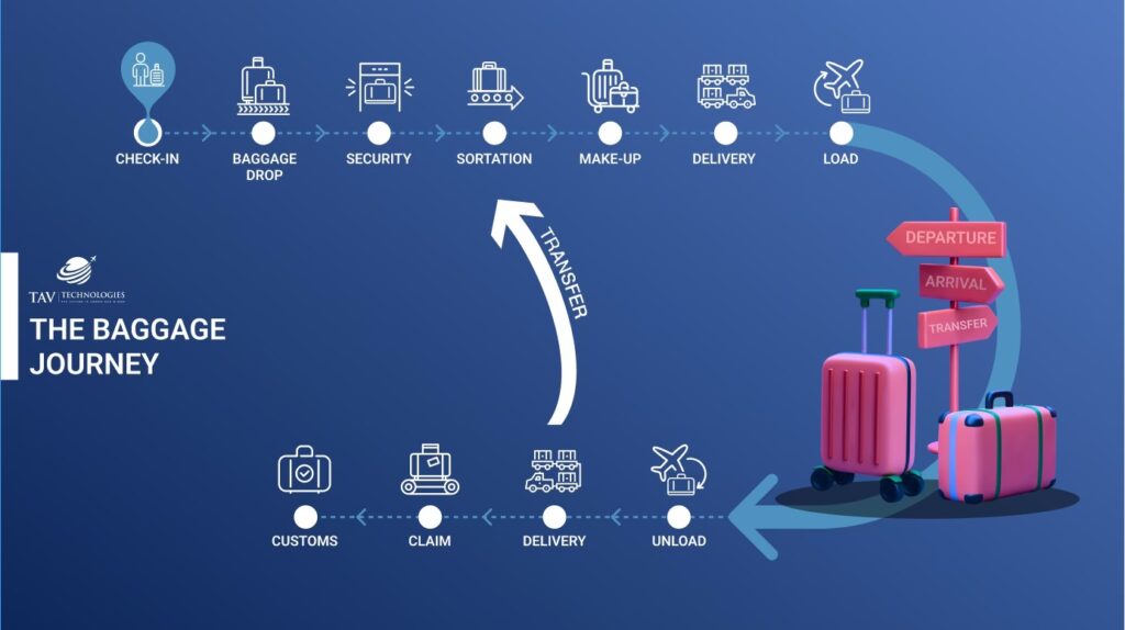 - Lastning: Efter godkendelse i sikkerhedskontrollen bliver din bagage sorteret og lastet på det korrekte fly.