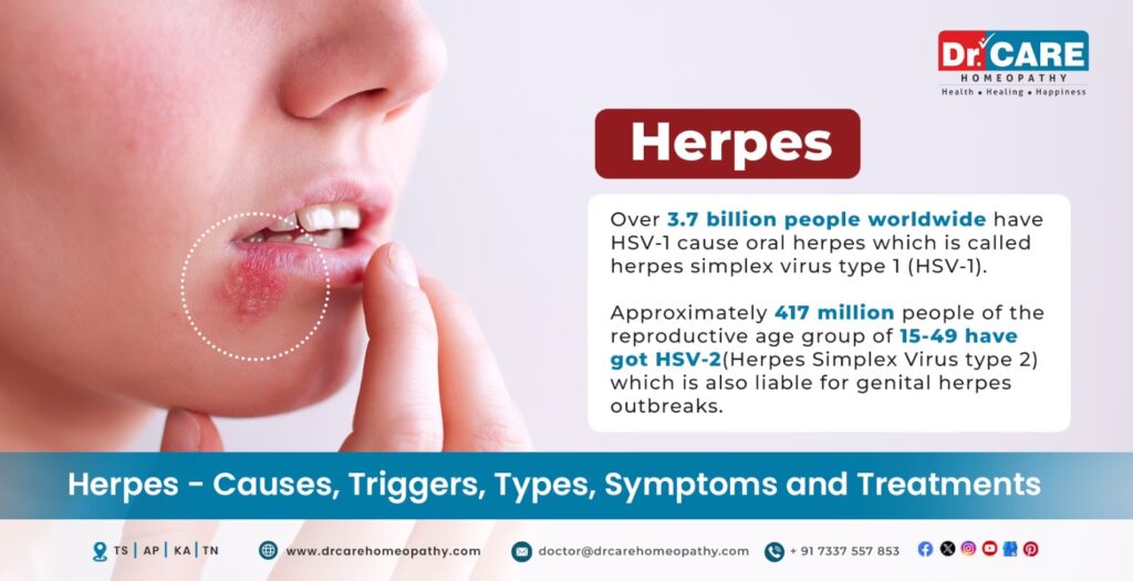 Efter det første udbrud kan virussen blive reaktiveret af forskellige triggere, såsom stress, sygdom, træthed, sollys eller menstruation.