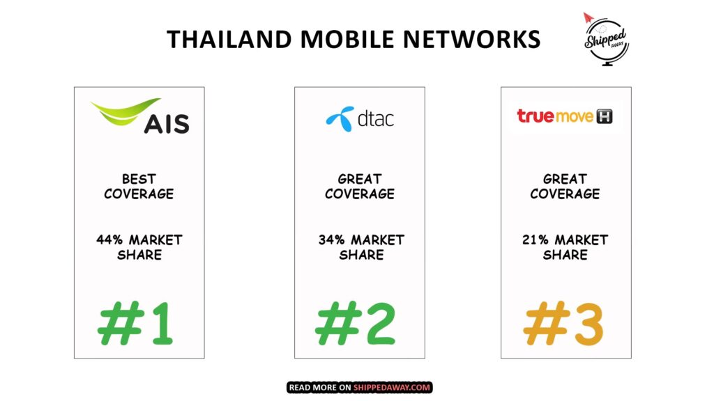 Generelt anses AIS for at have den mest omfattende og pålidelige dækning i hele Thailand, især hvis du planlægger at besøge fjerntliggende øer eller landdistrikter.