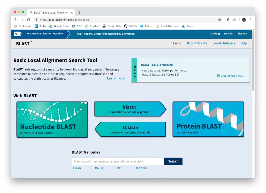 | BLASTN | Nukleotid (DNA/RNA) | Nukleotid (DNA/RNA) | Find lignende DNA-sekvenser, identificer gener. |