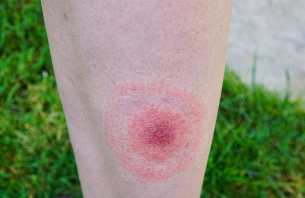 Borrelia-infektionen starter typisk lokalt i huden, hvor flåten har bidt. Det mest kendte tegn er et ringformet, rødligt udslæt kaldet Erythema Migrans (EM), som langsomt breder sig ud fra bidstedet. Udslættet opstår typisk 1-4 uger efter biddet, men ikke alle smittede udvikler det. Uden behandling kan bakterien sprede sig fra huden via blodet til andre dele af kroppen, herunder nervesystemet, leddene og hjertet. Da kroppens immunforsvar har svært ved at bekæmpe Borrelia-bakterien på egen hånd, er antibiotika den eneste effektive måde at udrydde infektionen og forhindre dens spredning. Behandlingen sigter mod at dræbe bakterierne og dermed stoppe sygdomsprocessen.