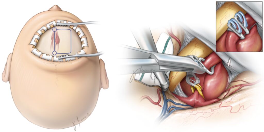 Klipning er den mest etablerede kirurgiske procedure for behandling af hjerneaneurismer. Det er en form for åben mikrokirurgi, hvor en neurokirurg fjerner en lille del af kraniet (en kraniotomi) for at få adgang til aneurismet. Ved hjælp af et operationsmikroskop navigerer kirurgen forsigtigt mellem hjernens strukturer for at nå frem til den beskadigede blodåre.