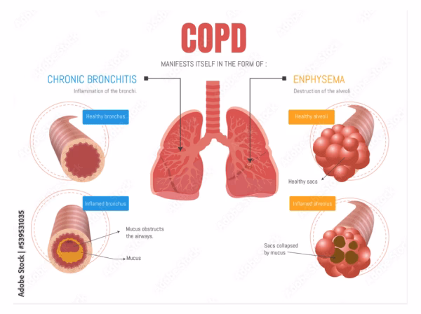 2. Betændelse og slim i de nedre luftveje: Nogle gange kan en forkølelsesvirus sprede sig til de nedre luftveje og forårsage bronkitis (betændelse i bronkierne). Dette fører til øget slimproduktion dybere i lungerne. Slimet kan blokere de små luftveje og alveolerne, hvor iltudvekslingen finder sted, hvilket reducerer lungernes kapacitet til at optage ilt.