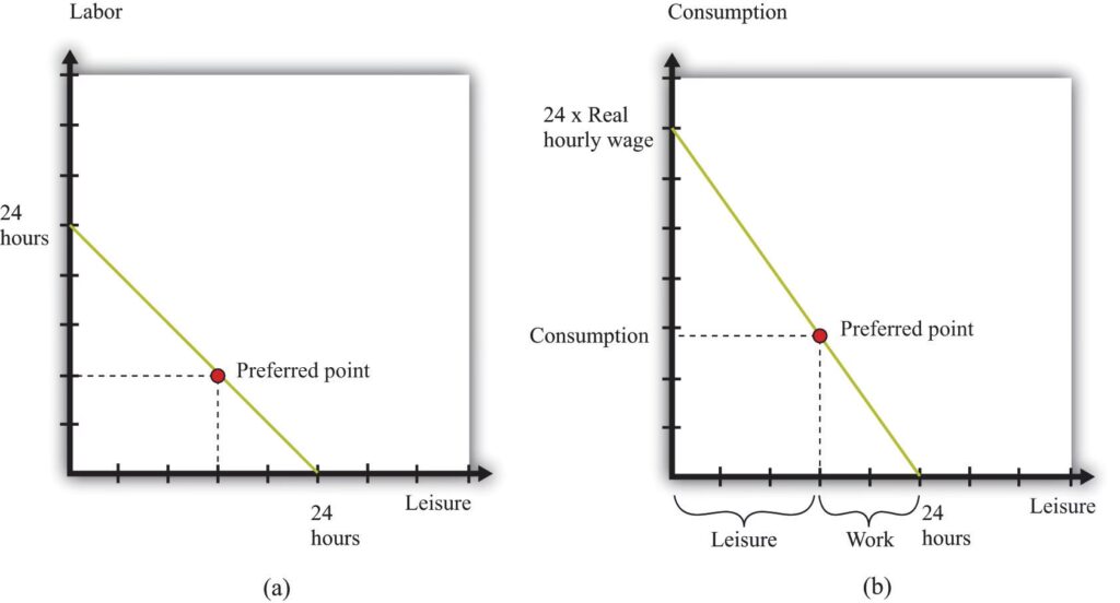 Forestil dig, at du har et ugentligt 'tidsbudget' på 168 timer. Nogle af disse timer går til søvn og basale fornødenheder, men en stor del skal fordeles mellem arbejde og fritid. Hver time, du bruger på arbejde, giver dig en indkomst, som du kan bruge på varer og tjenester – mad, bolig, oplevelser. Hver time, du bruger på fritid, giver dig en anden form for 'nytte' – glæde, hvile, socialt samvær, og genopladning af dine mentale batterier. Prisen for en times fritid er derfor den løn, du går glip af ved ikke at arbejde. Dette kaldes et arbejde-fritid budget.