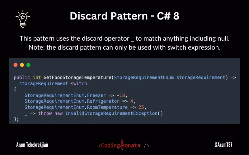 Quoting DotNet : "discards are placeholder variables". So it is not correct to call it a discard operator. I personally think it looks cryptic. I build with a variable named "discard" and I received no warning and no complaints. My choice is more descriptive and easier to see. Excerpt from Microsoft Documentation: