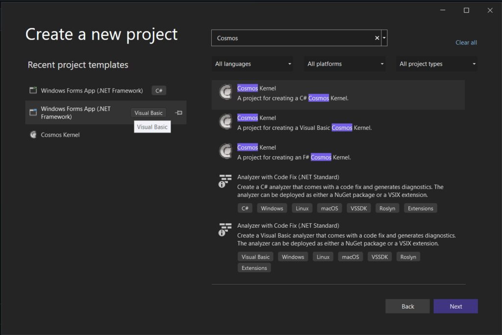 - User Kit: Dette er den mest simple version, designet til dem, der bare vil prøve kræfter med at bygge deres eget OS. Den skjuler meget af den underliggende kerne-kildekode og præsenterer en simpel projektskabelon i Visual Studio. Med User Kit kan du oprette, skrive et par linjer kode og trykke F5 for at bygge og køre dit OS. Det er en fantastisk måde at få en fornemmelse for, hvad Cosmos kan, selvom den er lidt ældre og primært tjener som en appetitvækker for Dev Kit.