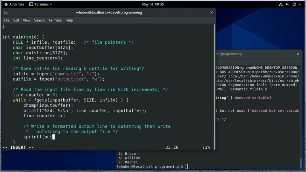 • fgets(): Læser en linje (en streng) fra en fil. Dette er en sikker funktion, da den forhindrer buffer overflows.