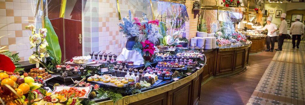 - Table-service restauranter: Du får en forret, hovedret, dessert og en sodavand. Dette inkluderer også buffetrestauranter.