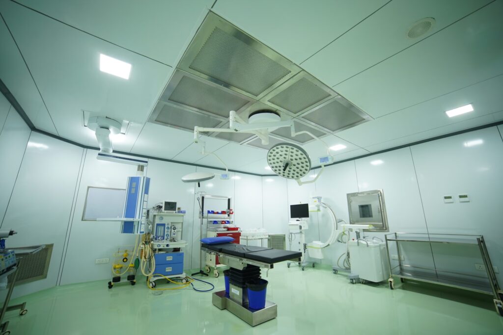 Et laminar flow system fungerer fundamentalt anderledes. I stedet for at blande luften, skaber det en ensrettet, jævn strøm af ultra-ren luft, der bevæger sig som et stempel fra loftet og ned over det kritiske område – typisk operationsbordet, instrumentbordene og det kirurgiske team. Denne luftstrøm fungerer som en beskyttende barriere eller et 'gardin' af ren luft, der aktivt skubber potentielt forurenende partikler ned og væk fra patienten og ud til udsugningsåbninger nær gulvet. Målet er ikke at fortynde, men at fortrænge den forurenede luft fra den sterile zone.