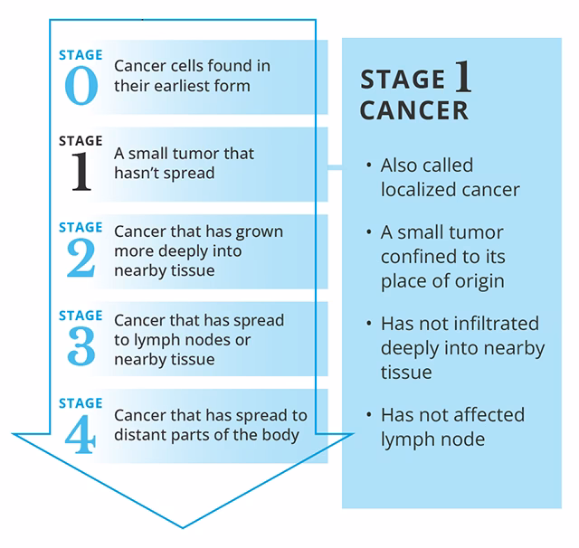 Stadium 1 æggestokkræft betyder, at kræften er begrænset til en eller begge æggestokke eller æggeledere. Kræftcellerne har ikke spredt sig til fjerntliggende organer eller væv, og der er ingen kræftceller i de nærliggende lymfeknuder.