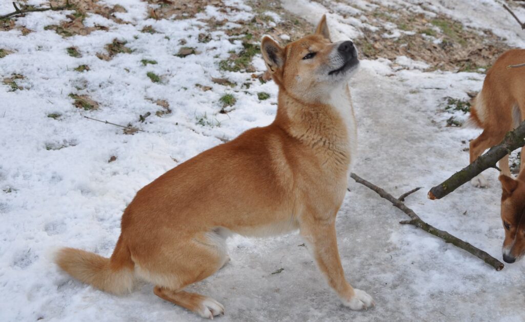 Navnet 'syngende hund' er ikke en overdrivelse. Deres vokalisation er uden tvivl deres mest kendte og unikke egenskab. Mens de fleste af deres lyde – såsom klynken, piben og gøen – minder om dem, man hører fra ulve og andre hunde, er deres hyl helt specielt. Det er blevet beskrevet som melodisk og næsten overjordisk.