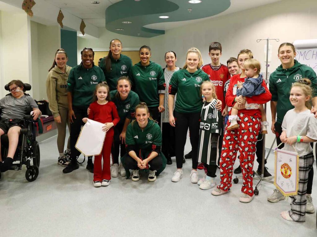 En delegation af førsteholdsspillere ankom til Royal Manchester Children's Hospital for at sprede julestemning. Gruppen bestod af Mason Mount, Alejandro Garnacho, Rasmus Højlund, Harry Maguire, Christian Eriksen, Jonny Evans, Tom Heaton og Altay Bayindir. Spillerne brugte eftermiddagen på at gå fra afdeling til afdeling, hvor de delte gaver ud, skrev autografer og vigtigst af alt, tilbragte tid med børnene og deres familier.