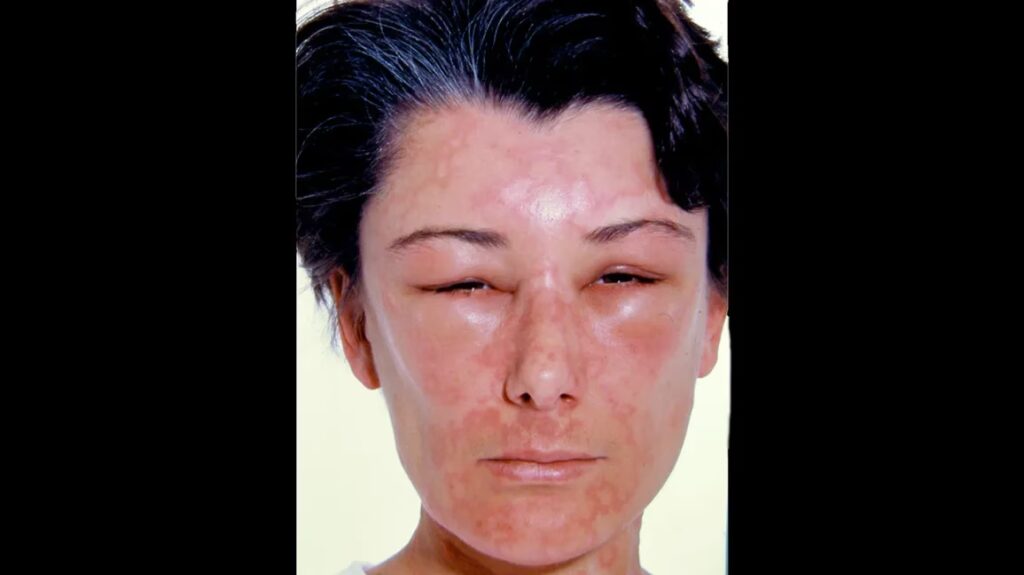 - Nældefeber (urticaria): Kløende, hævede plamager på huden, der kan opstå i klynger.