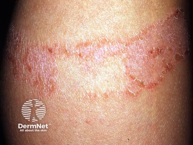 - Tørhed og Skældannelse: Ved gentagen eller langvarig eksponering kan huden blive tør, revnet og skællende. Huden kan også blive tykkere i det berørte område.