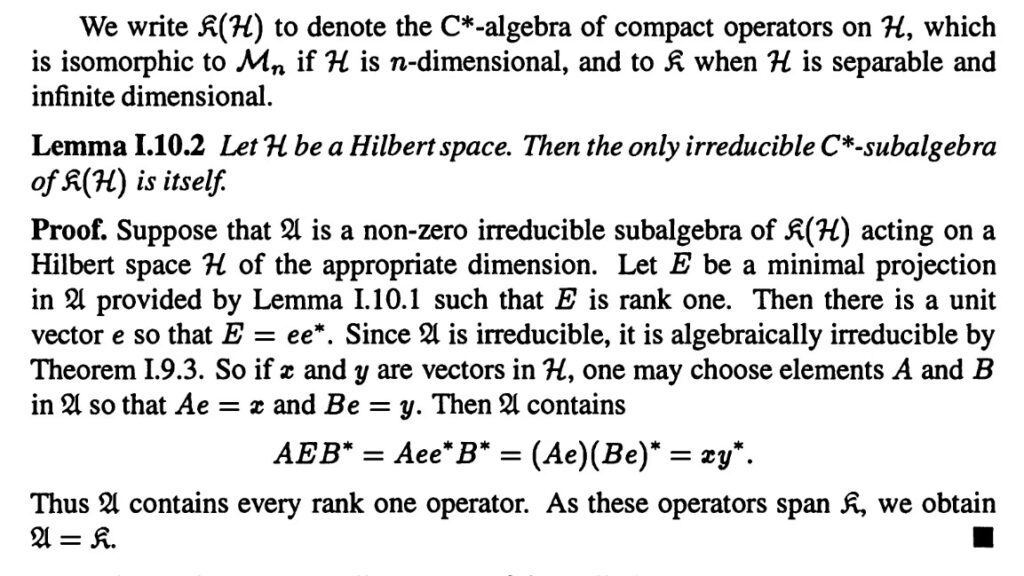 The properties of compact operators are similar to those of finite-dimensional linear transformations. For Hilbert spaces, any compact operator is the limit of a sequence of operators with finite rank, i.e., the image of is a finite-dimensional subspace in .