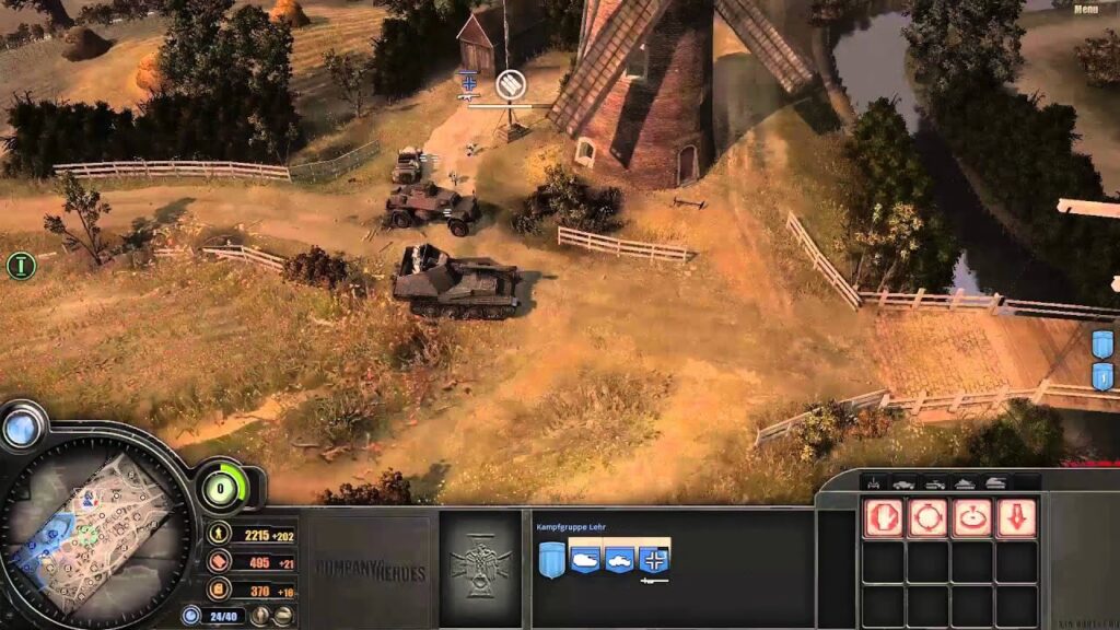 - Forsvar i Dybden: Den primære trussel kommer fra allierede kampvogne, især de farlige Wolverine-modeller. Forsvaret skal organiseres i flere lag. Placer infanteri med Panzerschrecks i bygninger, maskingeværer til at dække vejkryds, og brug dine Luftlande-enheder til at bygge flere 88mm kanoner. Disse kanoner er din bedste ven mod panser.