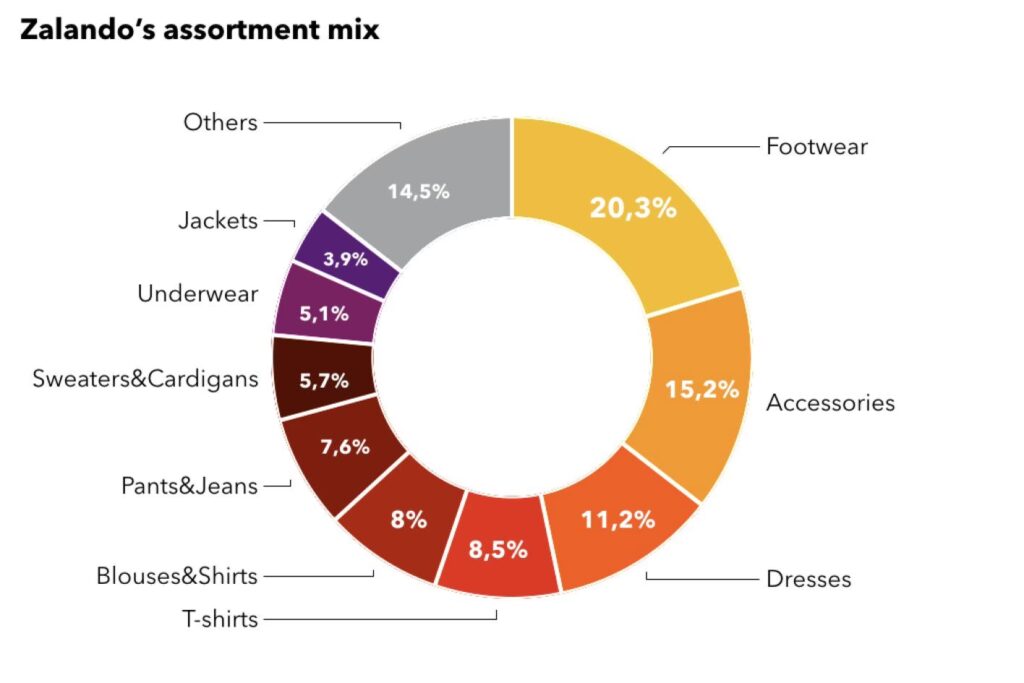 Zalandos produktsortiment er i dag enormt og dækker næsten alle aspekter af mode og livsstil. Platformen er inddelt i flere hovedkategorier for at gøre shoppingoplevelsen så nem og overskuelig som muligt for de over 51 millioner aktive brugere i 25 europæiske markeder.