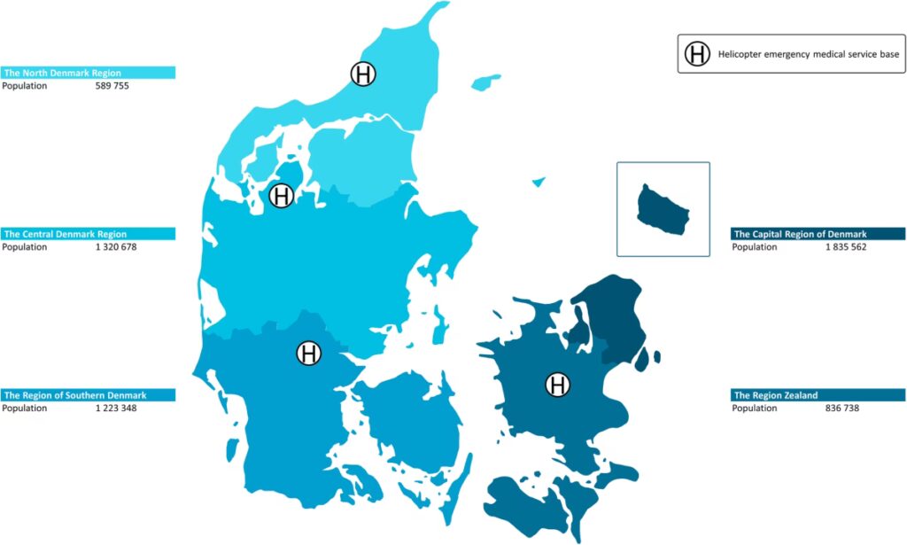 Siden 2014 har Danmark haft en landsdækkende akutlægehelikopter-tjeneste (HEMS - Helicopter Emergency Medical Service). Tjenesten består af fire helikoptere, der er strategisk placeret for at dække hele landet døgnet rundt. En helikopter er bemandet med en pilot, en anæstesilæge og en specialuddannet HEMS-redder. Helikopteren bruges primært til alvorligt syge eller tilskadekomne patienter i yderområder, på øer eller ved større ulykker, hvor hurtig transport til et specialhospital er afgørende.