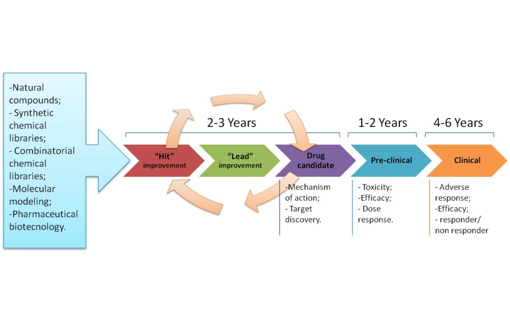 Det er en utrolig lang og dyr proces. Fra den første idé til et godkendt lægemiddel på markedet går der typisk 10-15 år. Selve syntesen i de tidlige faser er kun en lille del af rejsen, som også omfatter omfattende test for sikkerhed og effekt i celler, dyr og til sidst mennesker i kliniske forsøg.