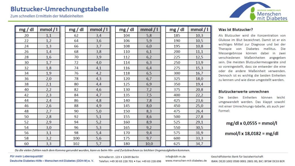 Blodsukker kan angives i to forskellige enheder: millimol per liter (mmol/l), som er standard i Danmark og det meste af Europa, eller milligram per deciliter (mg/dl), som bruges i f.eks. USA og Tyskland. Det fastende blodsukker, målt efter 8-12 timers faste (typisk om morgenen), er en vigtig referenceværdi.