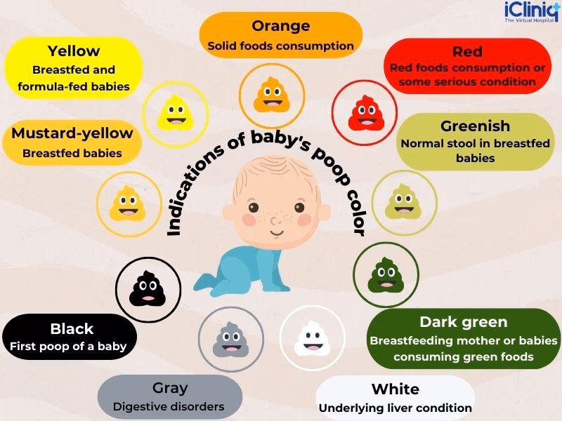 - Ammende babyer: Deres afføring er ofte naturligt løs, grynet (som sennep med små frø) og kan være gul eller let grønlig. De kan have afføring efter hver amning eller kun en gang hver flere dage. Dette er alt sammen normalt.