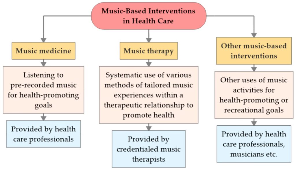 Det er vigtigt at skelne mellem de forskellige måder, musik anvendes på i sundhedsvæsenet.