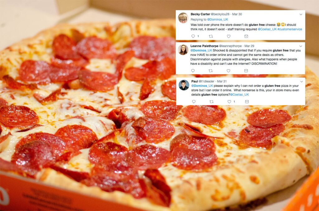 Domino's officielle politik er typisk en ansvarsfraskrivelse, der informerer kunderne om, at de ikke kan garantere et allergenfrit miljø. Dette er for at beskytte dem juridisk og for at give kunder med alvorlige allergier den nødvendige information til at træffe en informeret beslutning – som i de fleste tilfælde bør være at undgå deres produkter.