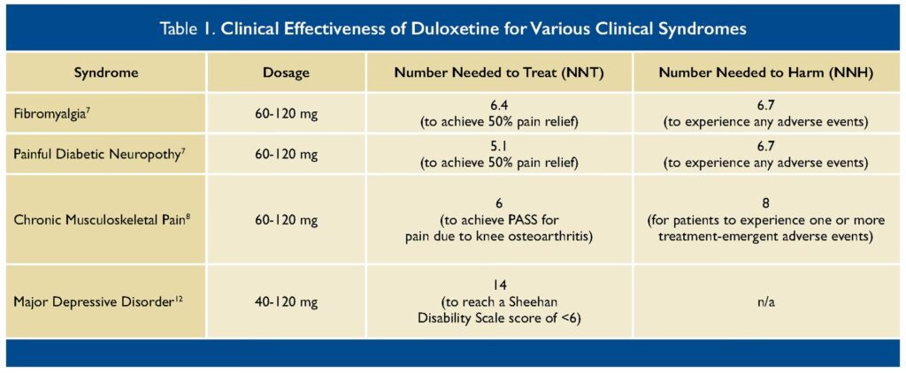 Teorien bag Duloxetins virkning er solid, men hvad viser de kliniske studier? Hvor stor er sandsynligheden for, at det rent faktisk hjælper på smerterne, og hvor hurtigt kan man forvente en effekt?