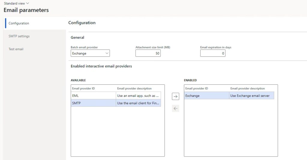 - Batch-e-mail-udbyder: Her vælges den e-mail-udbyder, der skal anvendes til e-mails sendt via batchprocesser, f.eks. automatiske statusopdateringer fra et workflow. De primære valg er Microsoft Graph, Exchange og SMTP. For sundhedsorganisationer er sikkerhed altafgørende, og Microsoft Graph anbefales på grund af dens moderne godkendelsesmetoder.