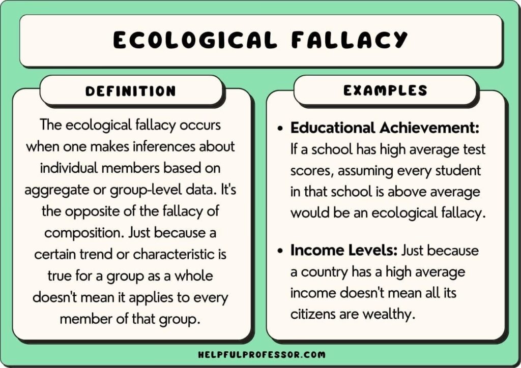Denne type potentielle fejlslutninger har ført til, hvad nogle kalder en "individualistisk forrang" i epidemiologien – en overbevisning om, at kun data indsamlet på individuelt niveau kan afsløre sandheden om sygdomsårsager. Man frygter, at aggregerede data er for "støjende" og fyldt med ukendte faktorer, der kan forvrænge resultaterne. Denne holdning overser dog vigtige nuancer og det faktum, at nogle eksponeringer og påvirkninger kun giver mening at analysere på et højere niveau.