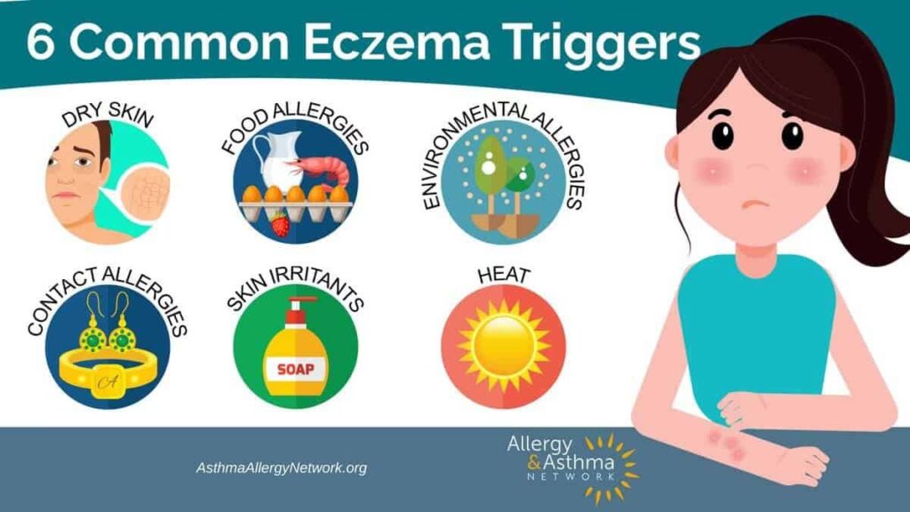 | Eksem (Atopisk Dermatitis) | Tør, kløende, rød, betændt hud; nogle gange væskende blærer eller fortykket hud. | Genetisk svækket hudbarriere, tørt klima, irritanter (sæbe, uld), allergener (husstøvmider), stress, infektioner. |