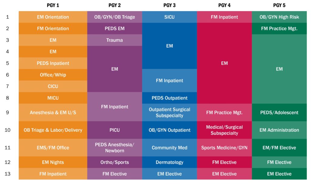Selvom det kan variere fra hospital til hospital og land til land, følger de fleste uddannelsesprogrammer i akutmedicin en ret struktureret model, især i lande som USA, hvor reguleringen er meget formaliseret. Mens den overordnede grænse for uddannelseslæger ofte er sat til et gennemsnit på 80 arbejdstimer om ugen set over en fireugers periode, har akutmedicin historisk set haft en mere stringent tilgang. Mange programmer sigter mod et skema med omkring 60 kliniske timer om ugen.