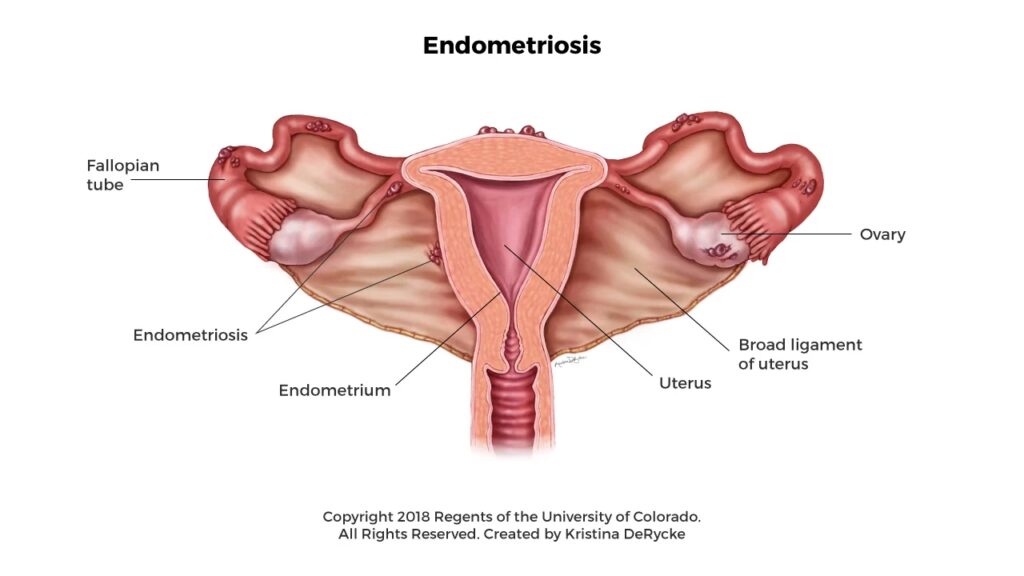 Endometriose er en tilstand, hvor væv, der ligner livmoderslimhinden (endometriet), vokser uden for livmoderen. Dette væv kan sætte sig på forskellige organer i bækkenområdet, såsom æggestokkene, æggelederne, ydersiden af livmoderen, tarmene og blæren. Problemet opstår, fordi dette fejlplacerede væv opfører sig på samme måde som vævet inde i livmoderen. Hver måned, under menstruationscyklussen, reagerer det på hormonelle svingninger ved at blive tykkere, bryde ned og bløde. Men i modsætning til menstruationsblod, der kan forlade kroppen, har blodet fra endometriosevævet ingen steder at komme hen. Dette fører til inflammation, irritation, arvævsdannelse (adhærencer) og cyster, hvilket er årsagen til de smerter og andre symptomer, der er forbundet med sygdommen.