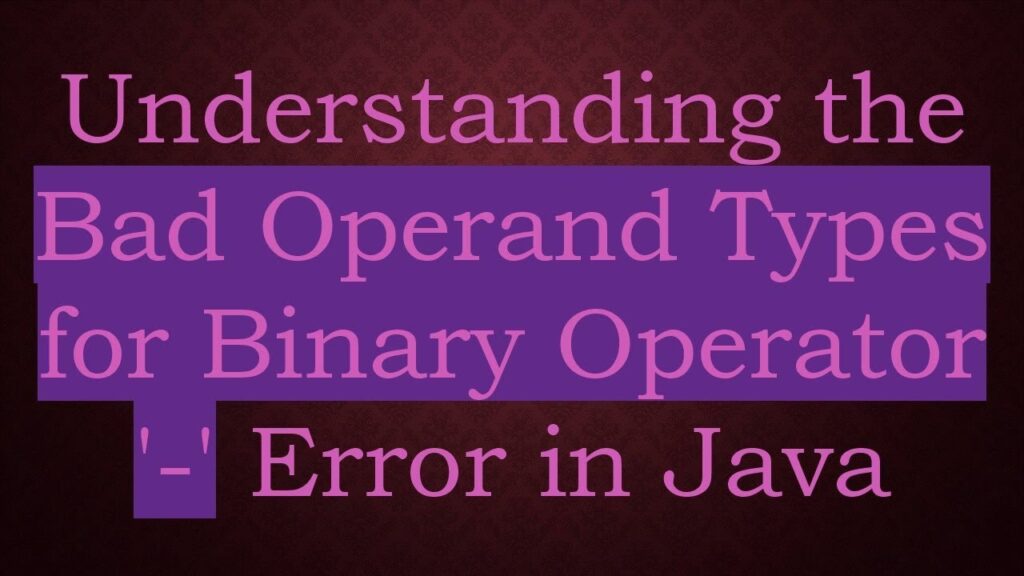 Here are some tips for avoiding bad operand type errors: Use the `instanceof` operator to check if an object is of the correct type before using it with a binary operator. Use the `cast` operator to cast an object to the correct type before using it with a binary operator.