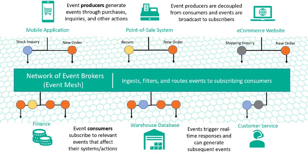 - Emne: Hver begivenhed bærer et 'emne' eller en 'etiket', som sikrer, at den kun bliver modtaget af de rigtige forbrugere. I biologisk forstand er dette hormonets molekylære form eller neurotransmitterens type, som kun passer til specifikke receptorer. Dette sikrer en målrettet og præcis kommunikation.